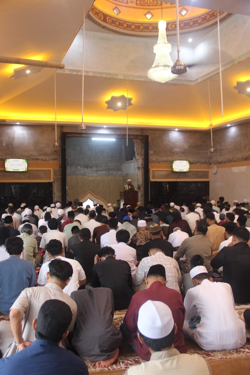 Kami pengurus DKM Masjid Jami almubasysyrin engucapkan taqabalalah wamina wamingkum, mohon maaf lahir dan batin, selamat hari raya idul Fitri 1447 H